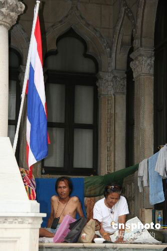 盡管泰國憲法法院九月九日已經(jīng)判決總理沙瑪因主持電視節(jié)目違背憲法無資格當(dāng)總理,但占據(jù)總理府的民盟示威者依然沒有離去。在總理府的過道上走廊里,隨處可見半躺半睡的示威者,或在看直播演講的電視,或上網(wǎng),或隨音樂唱歌跳舞,千姿百態(tài)。中新社發(fā) 顧時宏 攝