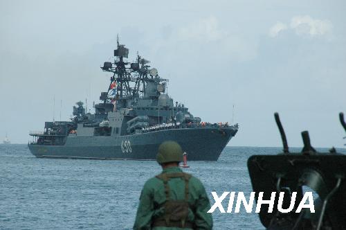 11月25日,俄羅斯“恰巴年科海軍上將”號大型反潛艦駛?cè)胛瘍?nèi)瑞拉北部港口拉瓜伊拉。俄羅斯總統(tǒng)梅德韋杰夫訪問委內(nèi)瑞拉前夕,四艘軍艦組成的俄羅斯北方艦隊(duì)艦艇編隊(duì)25日抵達(dá)拉瓜伊拉,準(zhǔn)備參加與委內(nèi)瑞拉海軍從12月1日開始的聯(lián)合軍事演習(xí)。新華社記者張笑然攝
