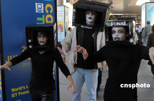 2009年國際消費類電子產品展覽會(CES)1月8日至11日在著名賭城美國拉斯維加斯舉行。由于受到金融海嘯的沖擊,今屆電子產品盛會雖然規模縮水、熱度降溫,但依舊新品紛呈、亮點不斷。今年電子展的主題為“數字娛樂與內容”,一批最新電子產品在本次展覽會上亮相。連綿數十米的微軟展臺以炫目的科技產品展示“我就是PC”的新理念,向與會者推介個人電腦、手機與電視走向融合的新趨勢。LG公司展示了一款具備通話、時鐘、音樂播放功能的腕表型手機;索尼公司推出了二十一英寸、厚度不足十毫米的OLED電視樣機;三星公司厚度僅有七毫米的全球最薄液晶電視吸引眾多眼球;多個廠家推出的輕巧上網筆記本電腦成為本屆展會的一道風景線。中新社發 甘泉 攝