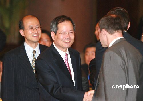 九月二十七日,朝核問題第六輪六方會談第二階段會議在北京釣魚臺國賓館開幕。圖為韓國代表團團長千英宇參加會議開幕。中新社發 廖文靜 攝