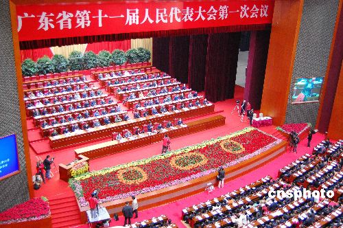一月十七日,廣東省第十一屆人民代表大會第一次會議在廣州開幕。廣東省省長黃華華在會上作省政府工作報告。中新社發 柯小軍 攝