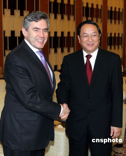上海市委書記俞正聲會(huì)見來(lái)華訪問(wèn)的英國(guó)首相戈登·布朗。