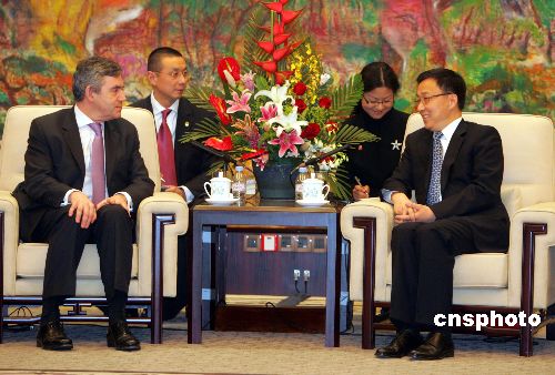 上海市市長(zhǎng)韓正會(huì)見來(lái)華訪問(wèn)的英國(guó)首相戈登·布朗。