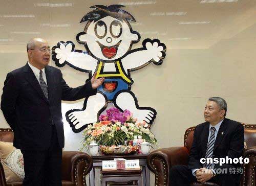 5月29日下午,吳伯雄率領(lǐng)的中國(guó)國(guó)民黨訪問(wèn)團(tuán)一行,在旺旺集團(tuán)董事長(zhǎng)蔡衍明(右)的陪同下,參觀、考察上海著名臺(tái)資企業(yè)旺旺集團(tuán)。吳伯雄參觀后表示,希望兩岸關(guān)系“旺旺”。中新社發(fā) 潘索菲 攝