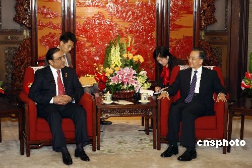 圖:中國總理溫家寶會見巴基斯坦總統扎爾達里