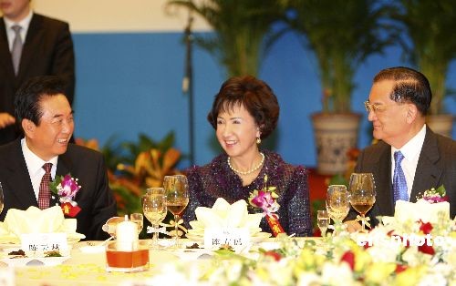 海協(xié)會(huì)會(huì)長陳云林與中國國民黨榮譽(yù)主席連戰(zhàn)夫婦交談。