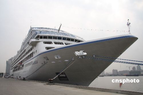 曾險遭索馬里海盜劫持的馬紹爾群島籍豪華郵輪“娜蒂卡”號,3月18日駛抵上海國際客運中心。船方表示,盡管曾遇海盜襲擊,船方表示,并不打算改變郵輪航線。據悉,該郵輪已是上海港的“常客”,此次從日本來滬,載有歐美旅客五百四十余名。中新社發 陳靜 攝