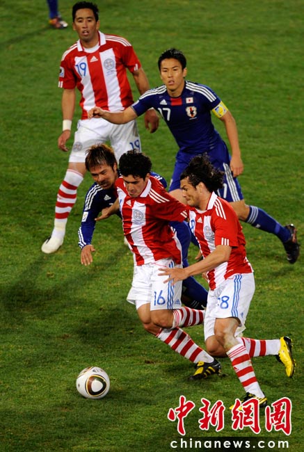 29日晚,南非世界杯1/8決賽第七場比賽比勒陀利亞的洛夫托斯球場拉開戰(zhàn)幕,由巴拉圭隊迎戰(zhàn)日本隊。120分鐘比賽結束時,雙方均沒有建樹,場上比分始終保持在0-0。在殘酷的點球大戰(zhàn)中,巴拉圭隊五罰全中,以5-3擊敗日本,挺進八強。
