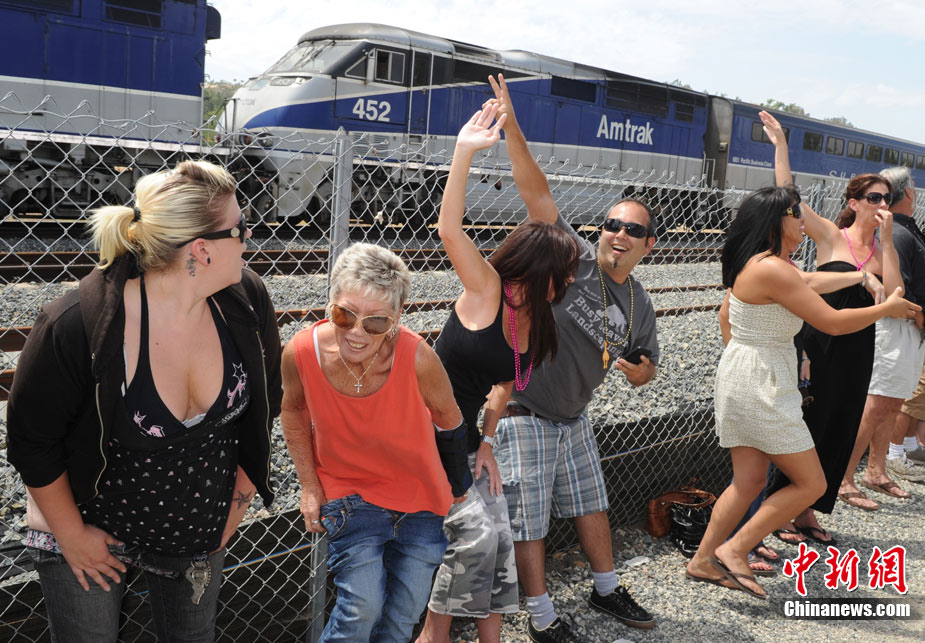 美國加州萬人背對火車“曬屁股”