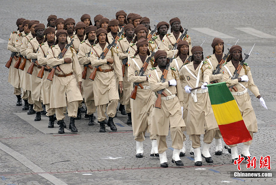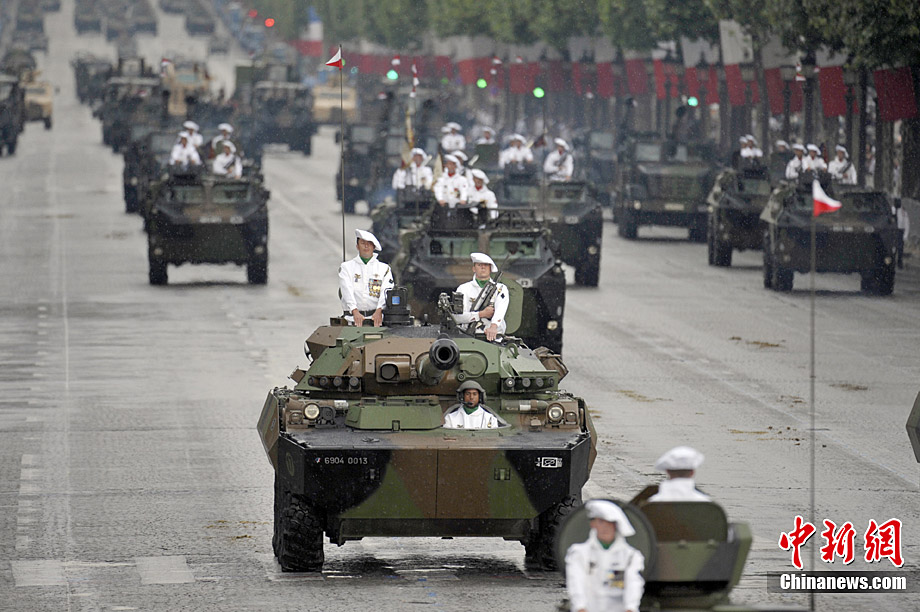 當地時間7月14日,法國巴黎舉行了盛大的國慶日閱兵式。圖為法國總統薩科齊在法國三軍總參謀長愛德華·紀堯的陪同下檢閱部隊。 中新社發 吳衛中 攝
