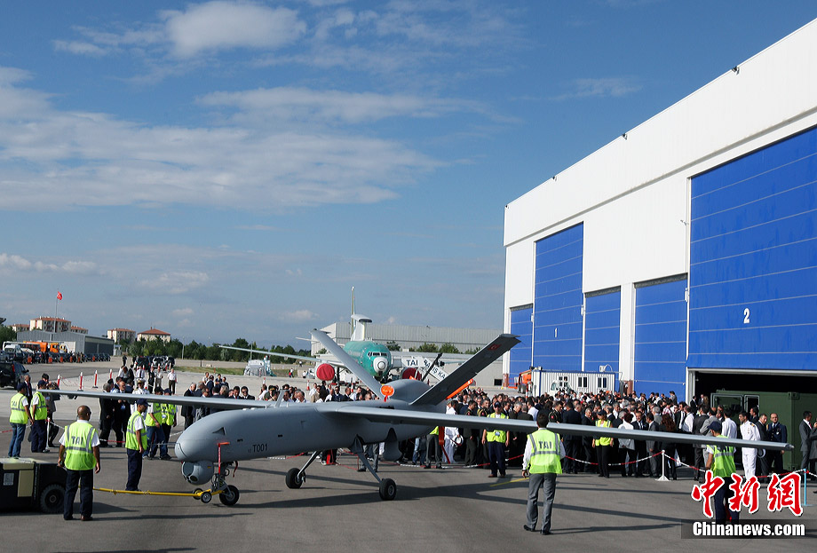 當地時間7月16日,土耳其首架無人駕駛偵察機在首都安卡拉附近的空軍基地亮相。該偵察機是由土耳其航空航天工業公司研發的。