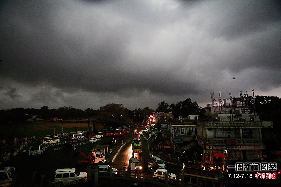 周一(12日),烏云籠罩著印度的查謨。當地已進入季風雨季。