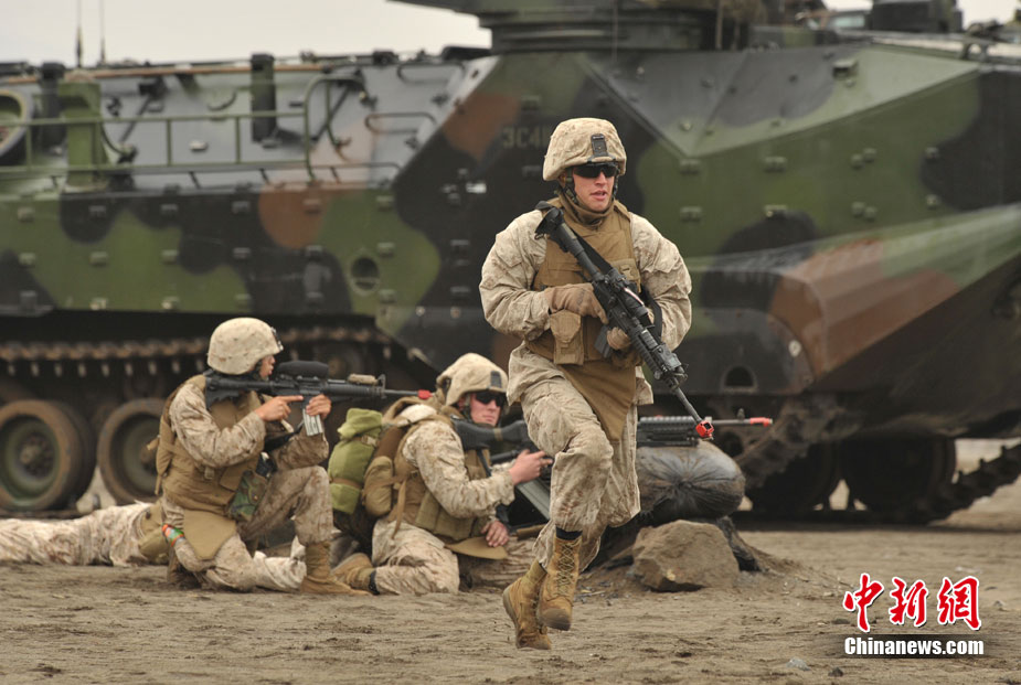 7月19日,美國與秘魯、阿根廷、巴西、哥倫比亞、墨西哥和烏拉圭等10國海軍一起在秘魯首都利馬北部的安孔港展開一場代號為“SE/POA 10”的聯(lián)合兩棲登陸演習(xí)。