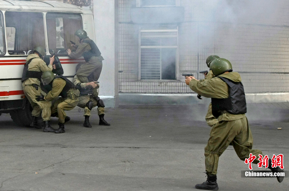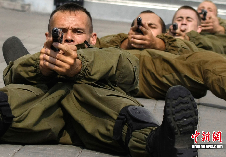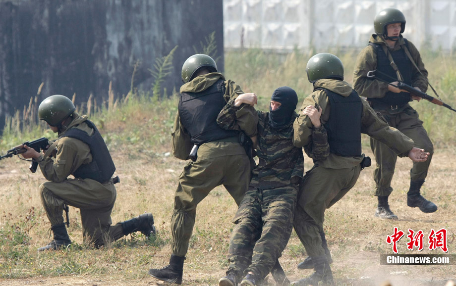 當地時間7月28日,俄羅斯特別部隊(內務部特種部隊)士兵在莫斯科郊區公開展示了其訓練成果和戰斗技能。