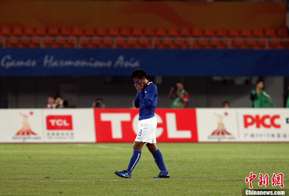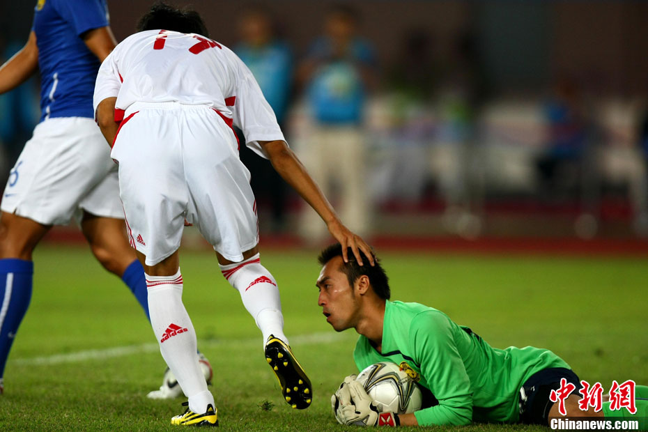 11月13日,在廣州天河體育場進行的亞運會男子足球小組賽A組第31場中國隊對陣馬來西亞的生死之戰,中國隊以3比0戰勝馬來西亞隊小組出線。中新社記者 富田 攝