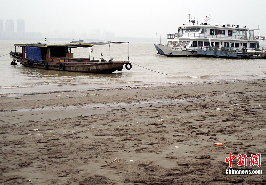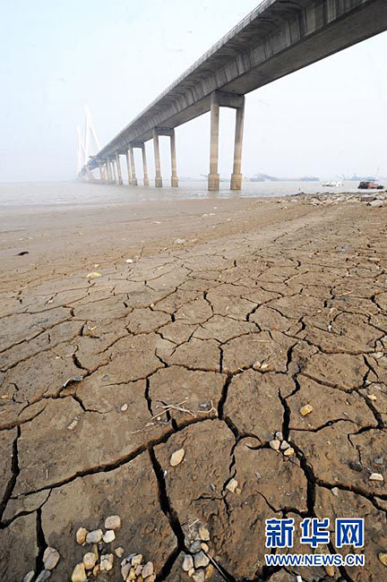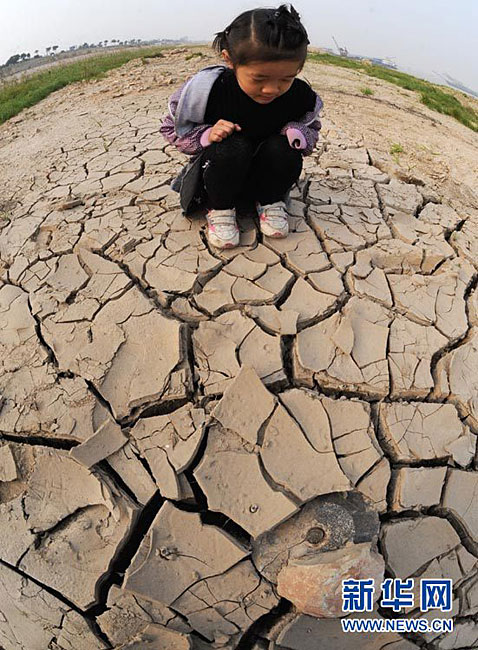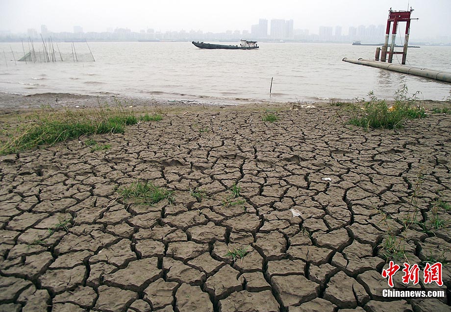 截至2010年11月14日17時,長江南京段水位降至4.08米,大片江岸河床裸露。近期,受中上游枯水和區(qū)域降雨量減少等因素影響,長江南京段水位連續(xù)下降。圖為11月14日,長江南京段南側江岸河床裸露,土層龜裂。圖片來源:CNSPHOTO 安東 攝