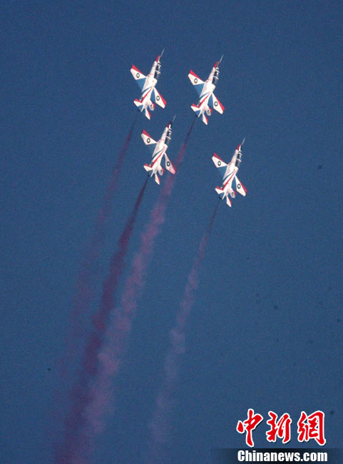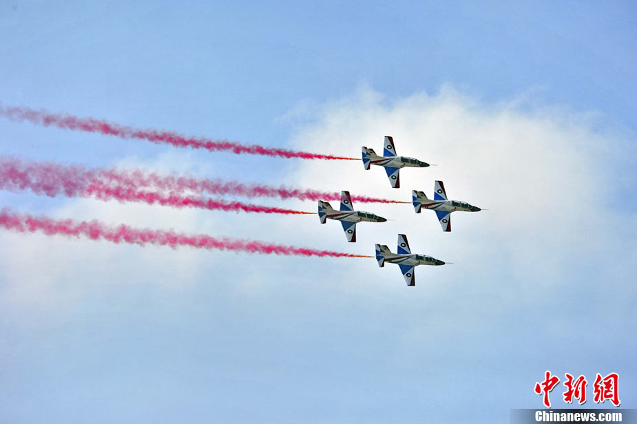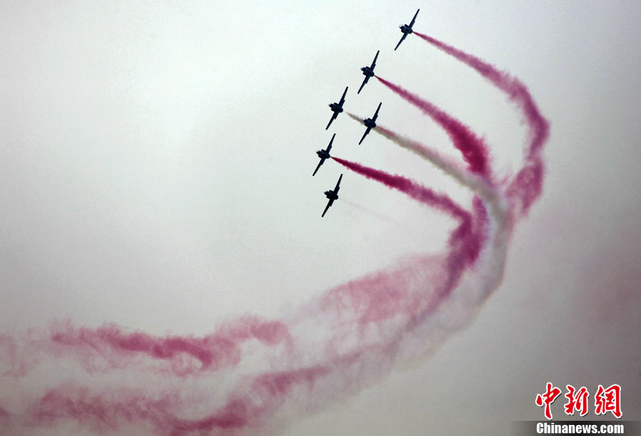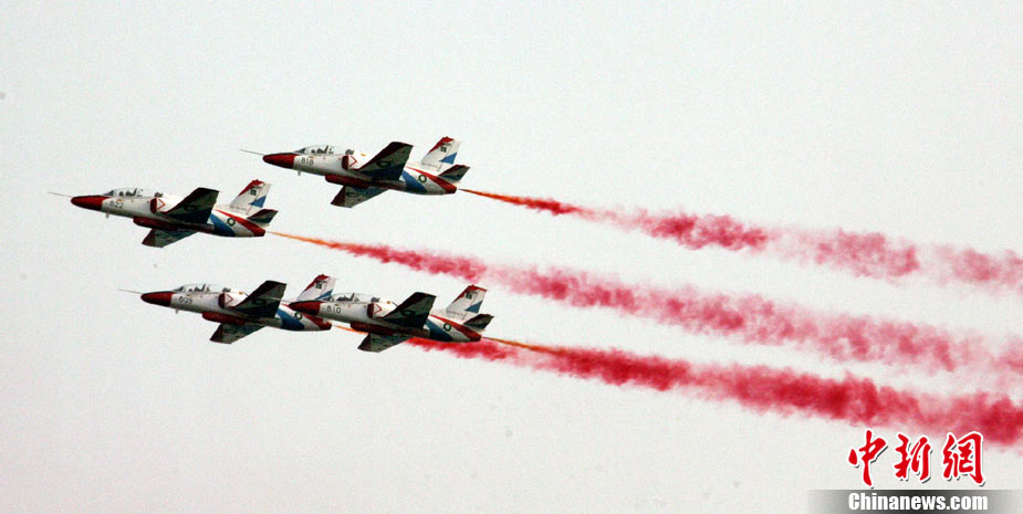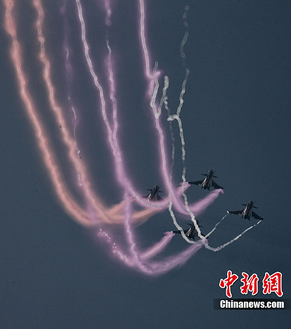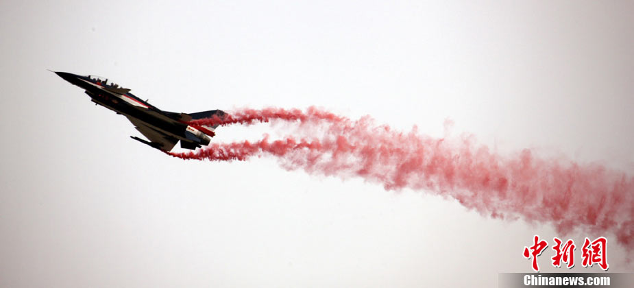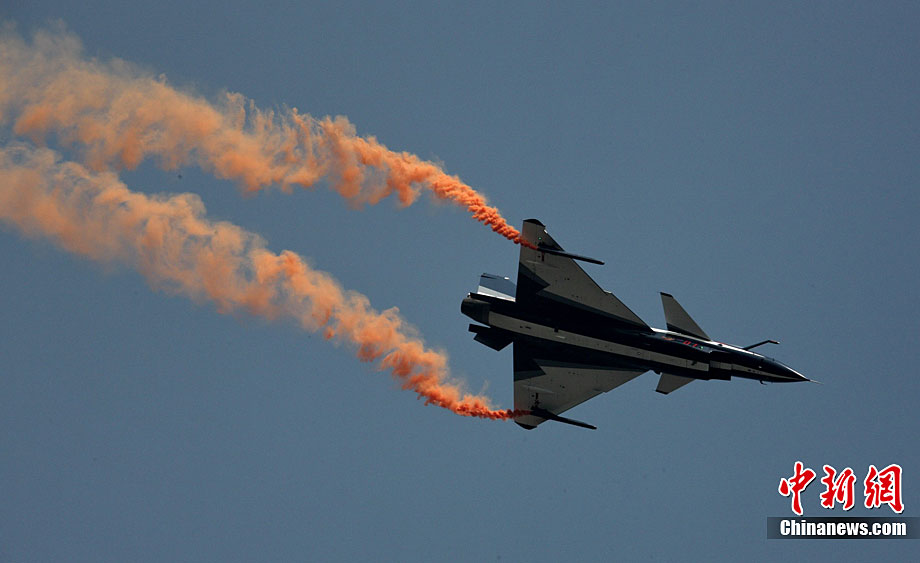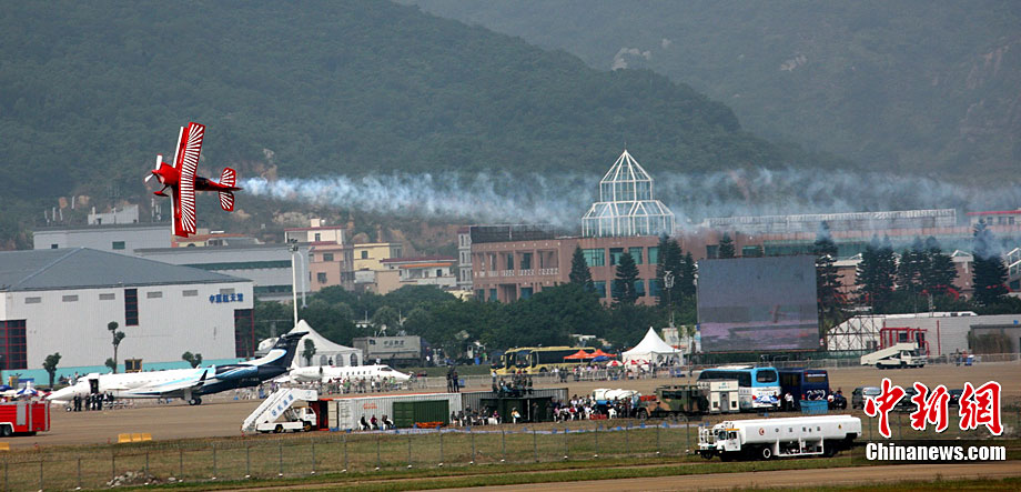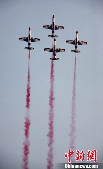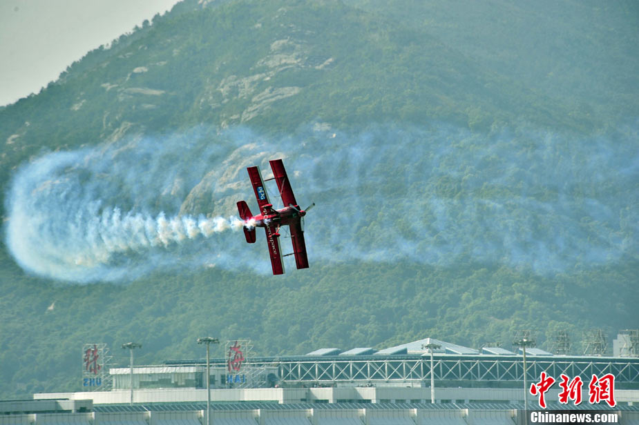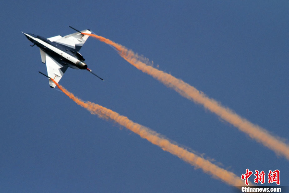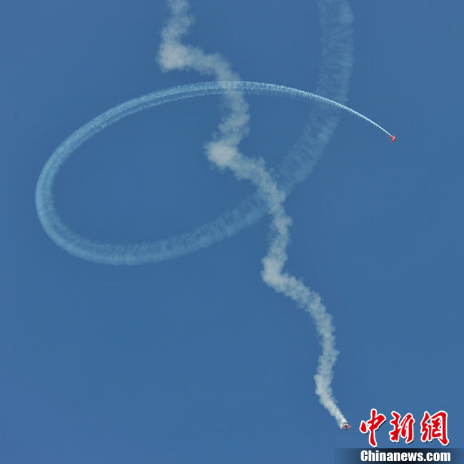 11月18日,美國紅鷹飛行表演隊參加第8屆中國國際航空航天博覽會飛行表演,因故只有一架表演,但表演仍然是精采紛呈。喬天富 攝 圖片來源:CNSPHOTO