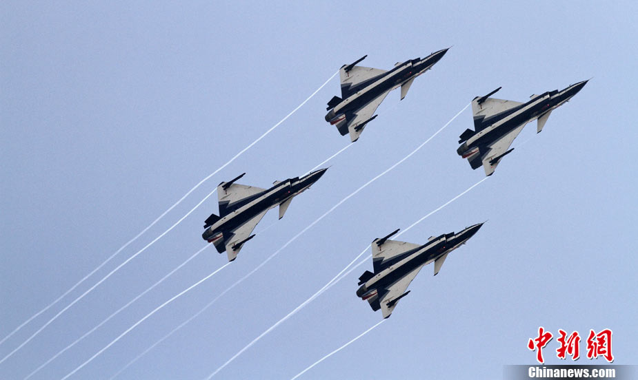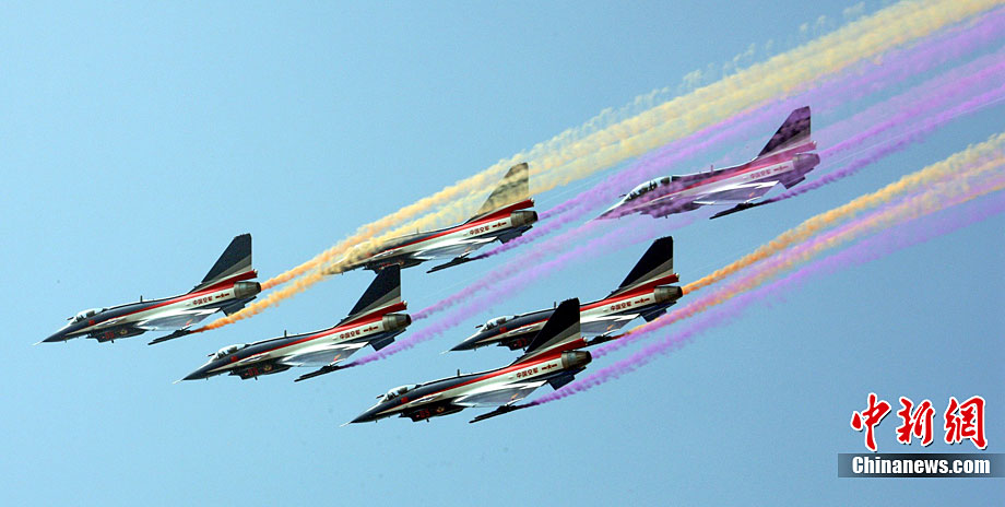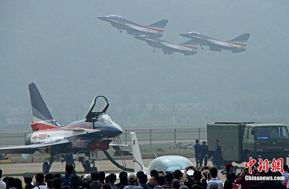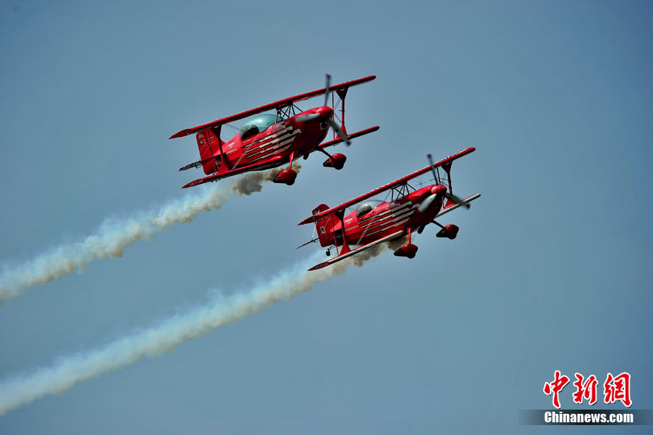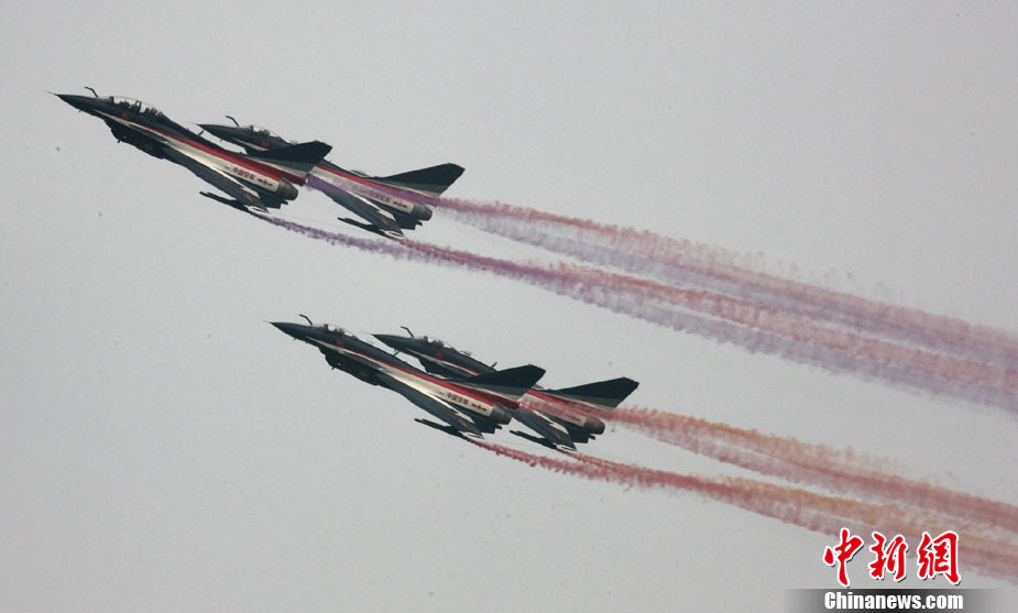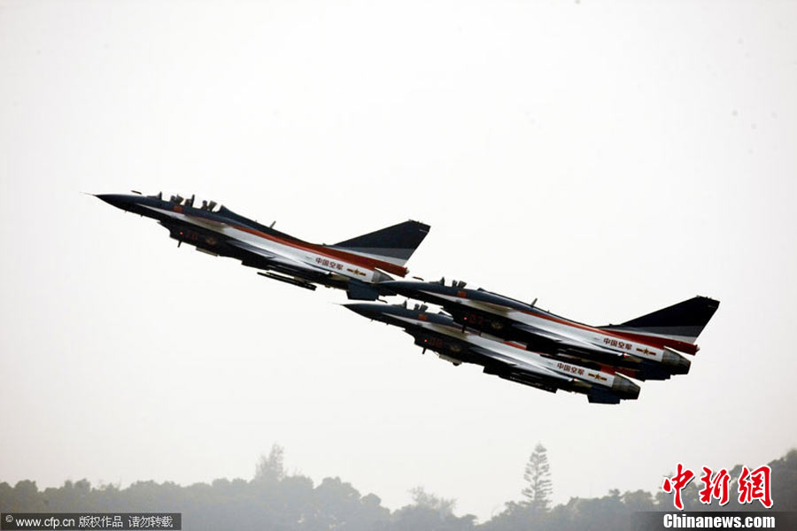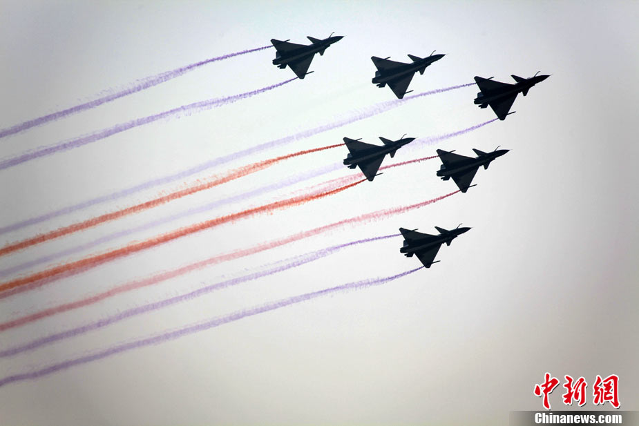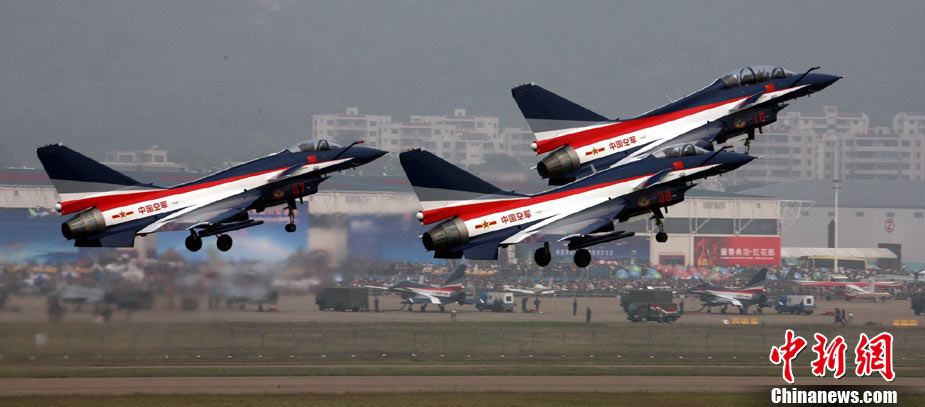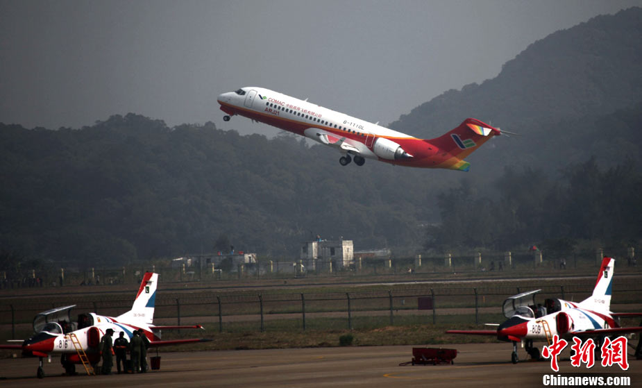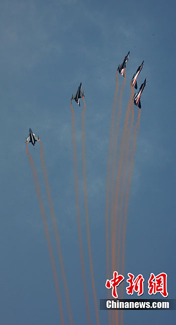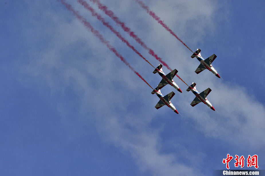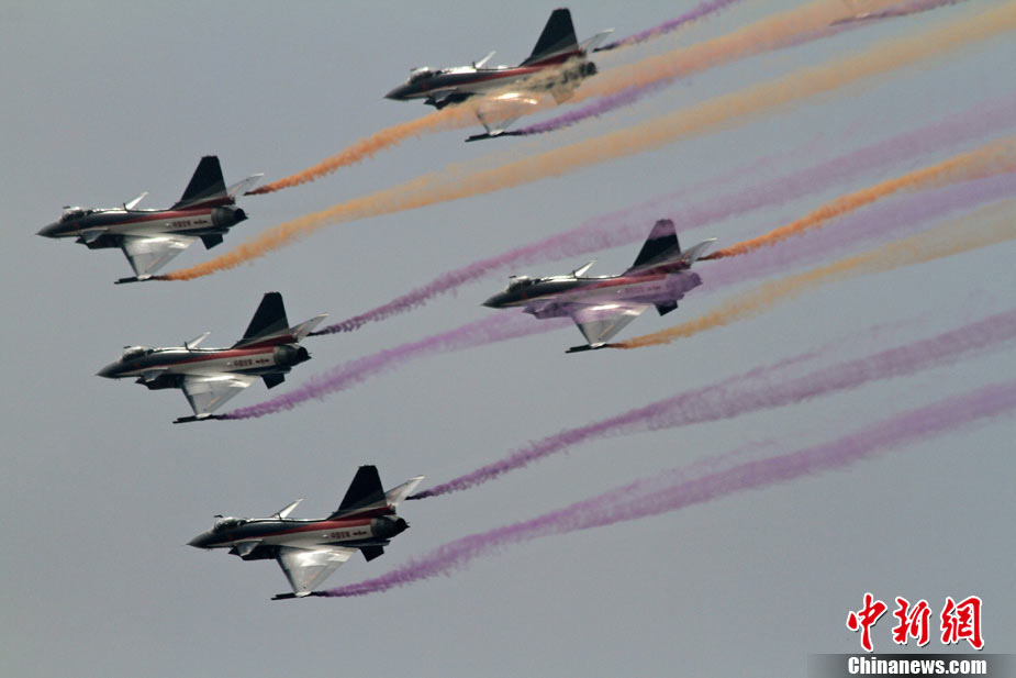 11月18日,美國紅鷹飛行表演隊參加第8屆中國國際航空航天博覽會飛行表演,因故只有一架表演,但表演仍然是精采紛呈。喬天富 攝 圖片來源:CNSPHOTO