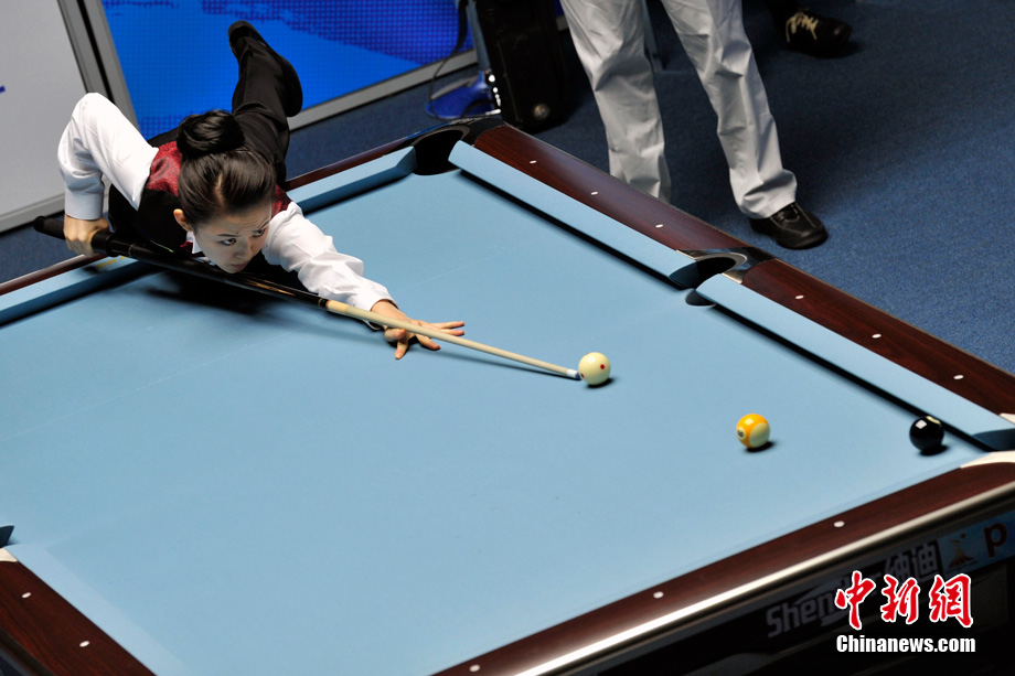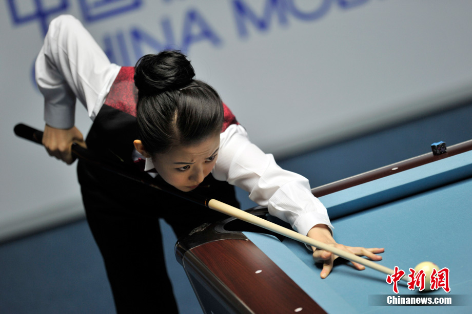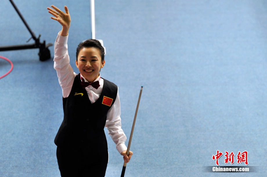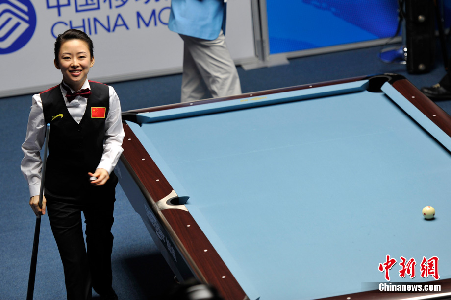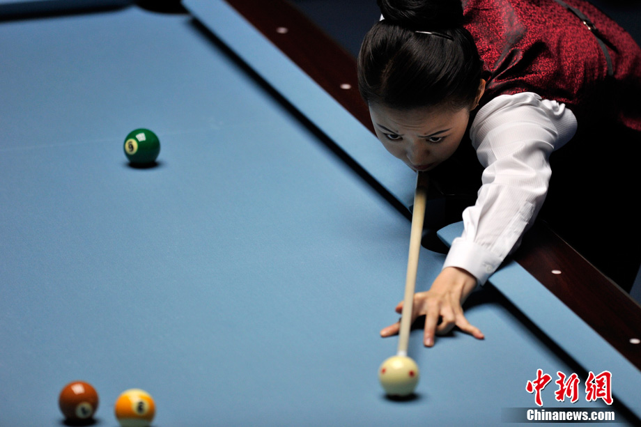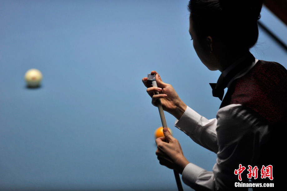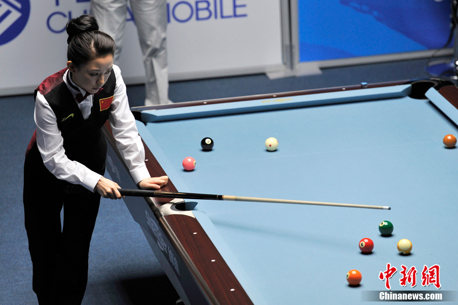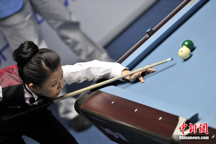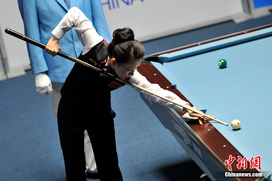 11月19日下午,廣州亞運會女子美式9球單打決賽在亞運城體育館上演,經過2個多小時的激烈角逐,中國選手潘曉婷以7:5力克中華臺北選手周婕妤,最終奪冠。中新網記者 金碩 攝