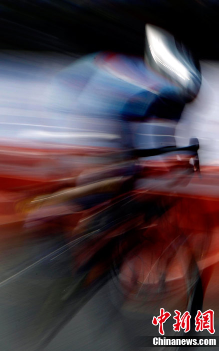 11月20日,廣州亞運會男子公路個人計時賽中的動感瞬間,仿佛將人帶入一個新奇的科幻世界。中新社記者 杜洋 攝