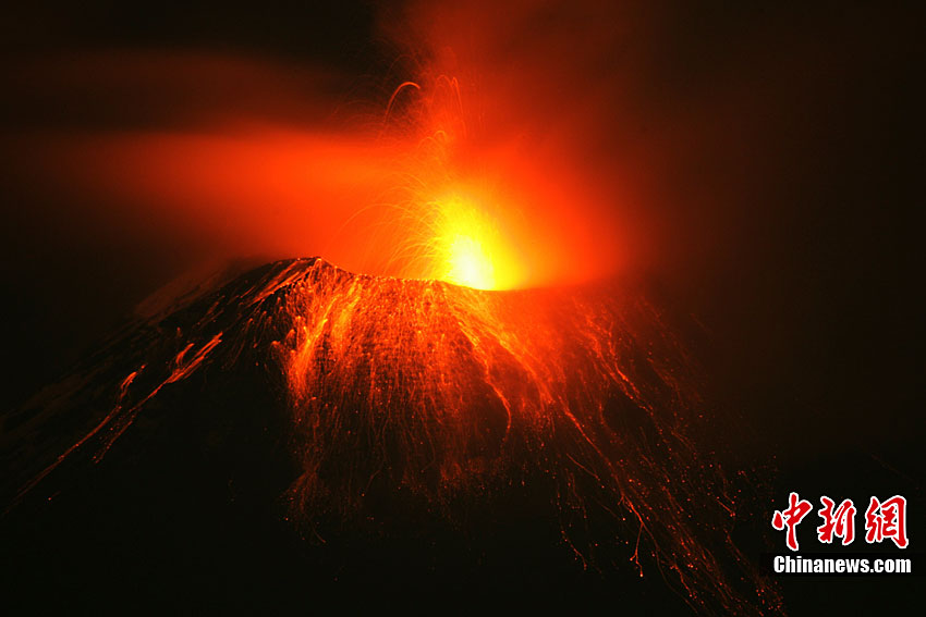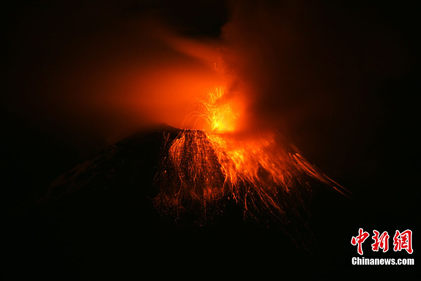 當地時間11月27日晚,位于厄瓜多爾首都基多以南100多公里的通古拉瓦火山噴出大量熔化的巖石,氣體和火山灰。