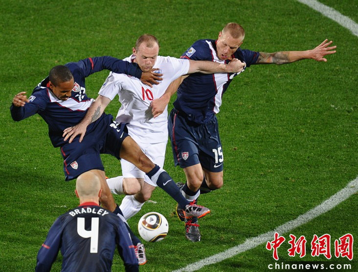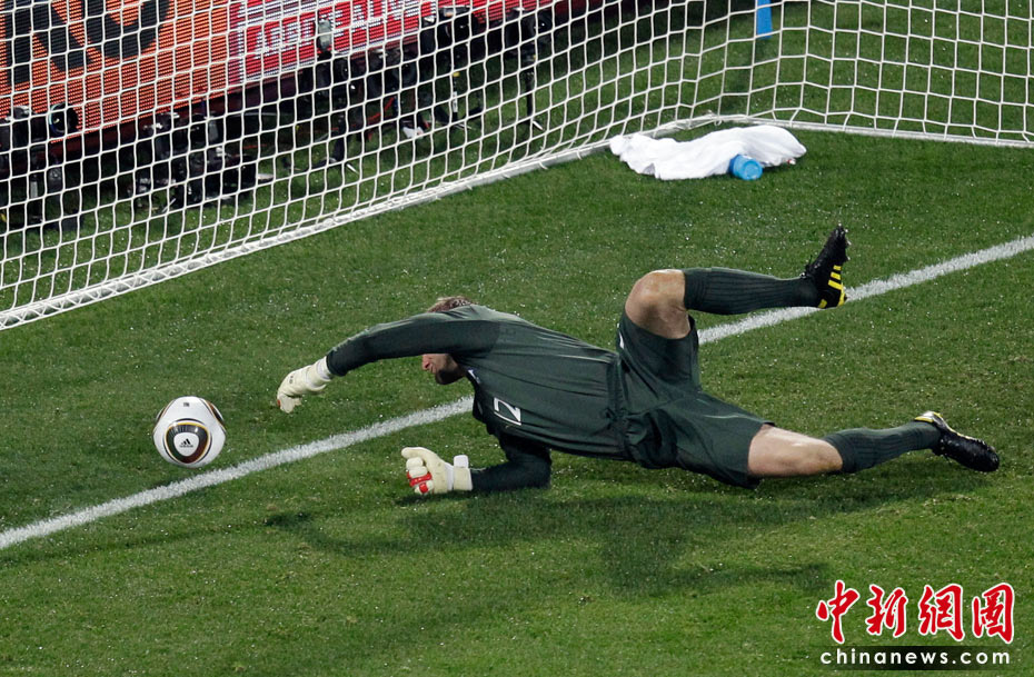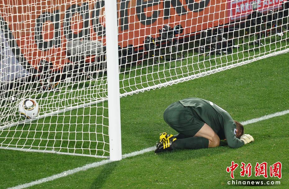 在13日凌晨2:30開(kāi)始的一場(chǎng)南非世界杯小組賽中,英格蘭隊(duì)迎來(lái)了首個(gè)對(duì)手美國(guó)隊(duì),雖然蘭帕德在比賽開(kāi)始后先拔頭籌,但上半場(chǎng)臨近結(jié)束前守門(mén)員格林的一次超低級(jí)失誤斷送好局,最終雙方1-1握手言和。 圖為格林失誤的瞬間。