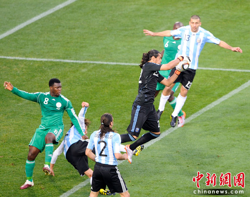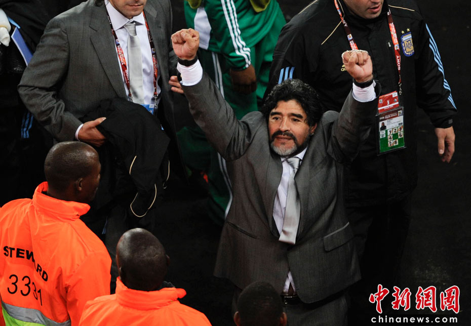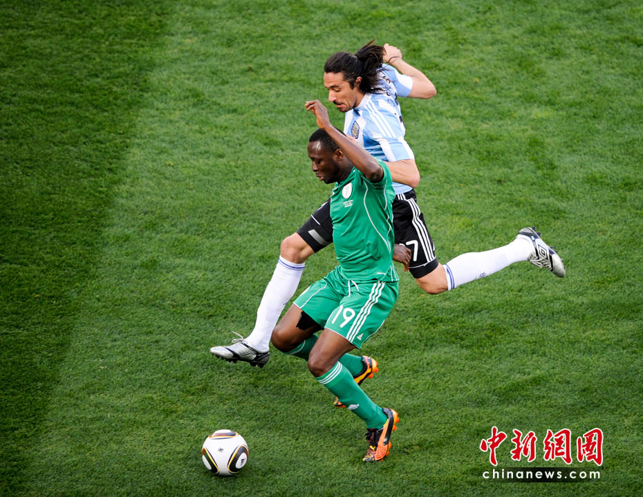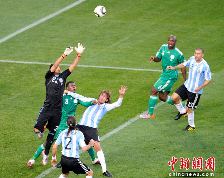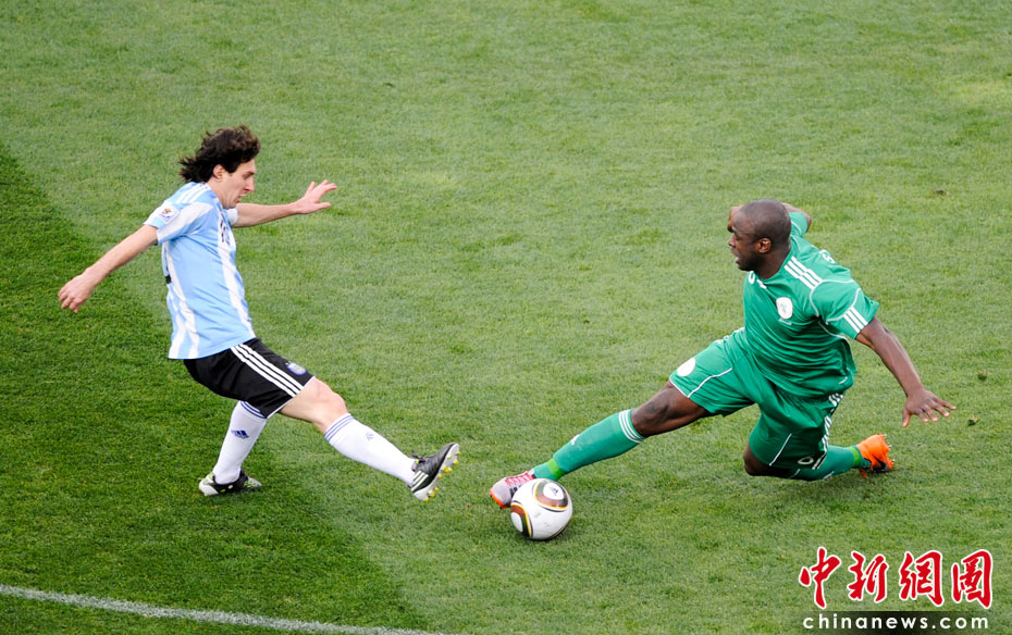 關注馬拉多納,期待梅西,阿根廷隊在南非世界杯上的首演沒有令等待他們的球迷失望,1比0擊敗非洲勁旅尼日利亞隊,“潘帕斯雄鷹”再添奪冠底氣。中新社記者 廖攀 攝