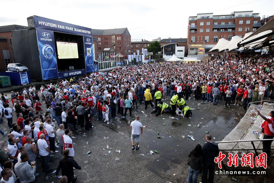 6月13日,英格蘭在世界杯小組賽中被美國1-1逼平。賽后,聚集在曼徹斯特足球公園集體觀看比賽的部分球迷為宣泄情緒鬧事,警方拘捕了部分足球流氓。
