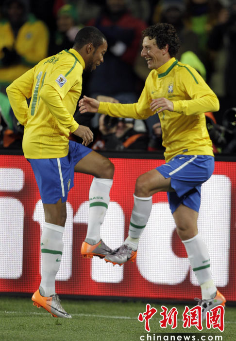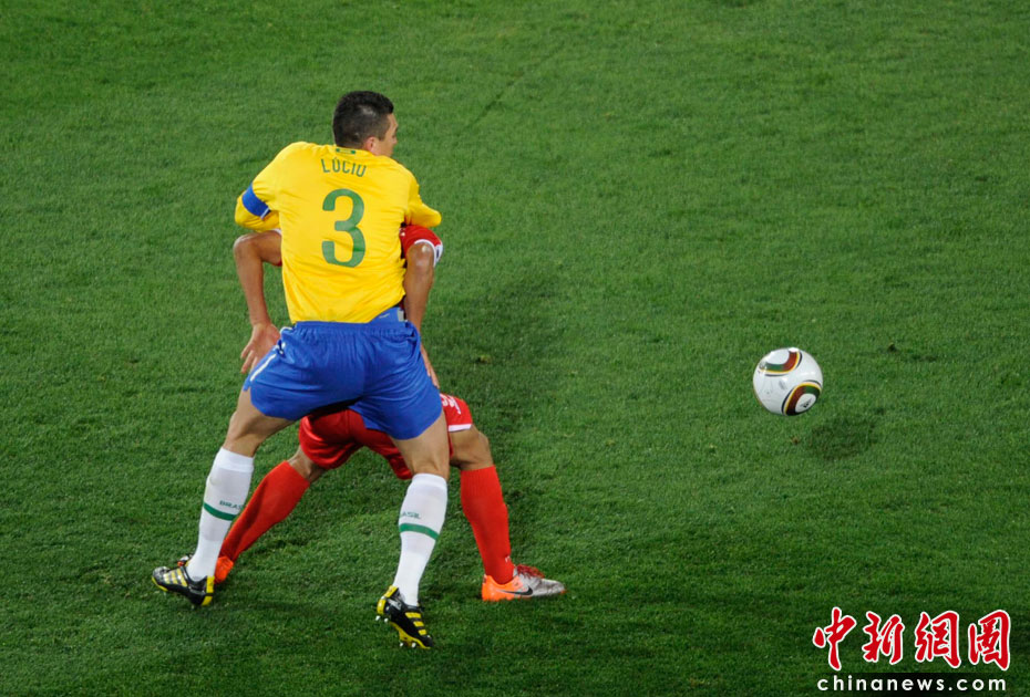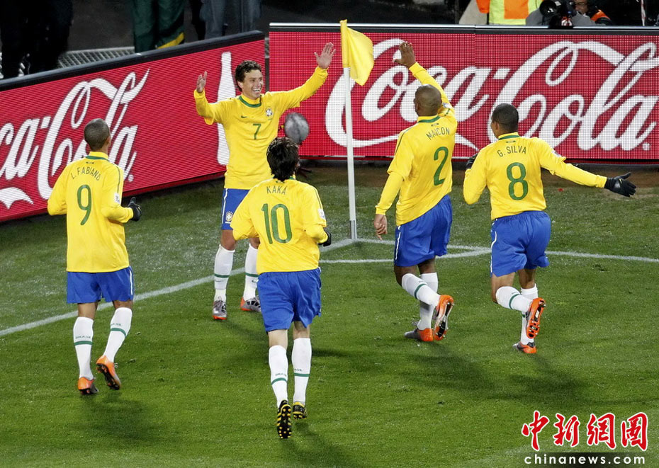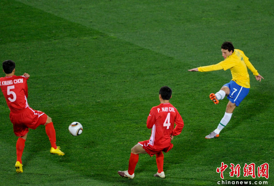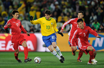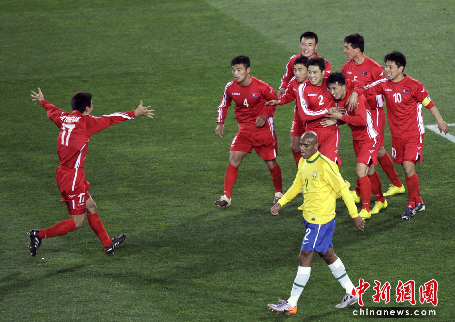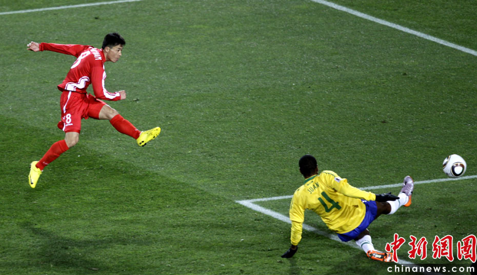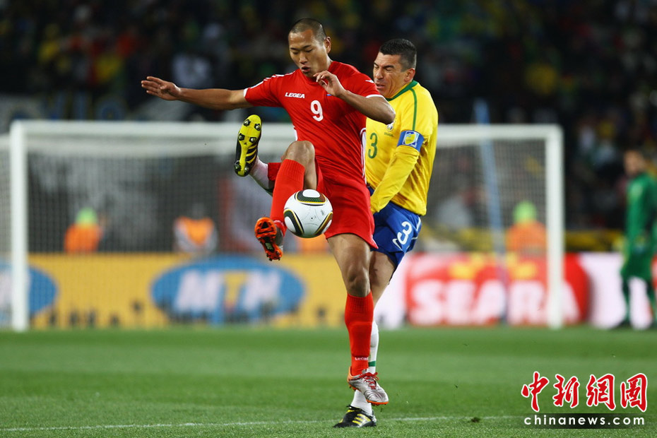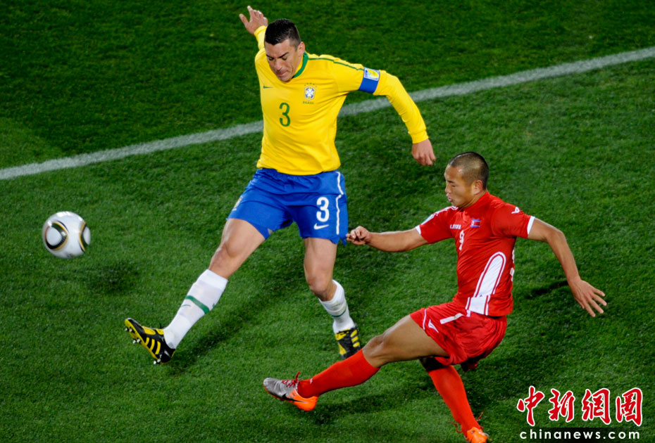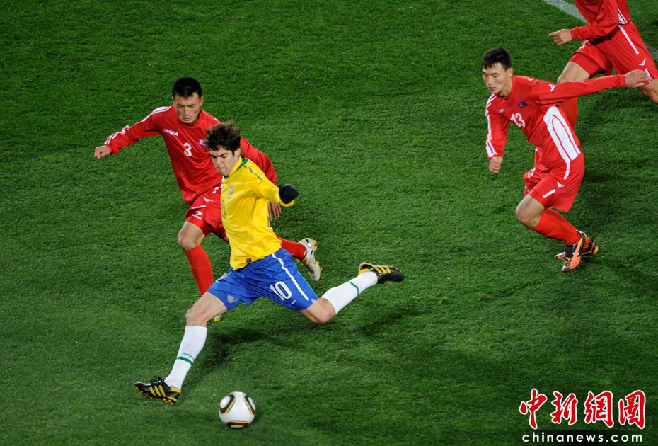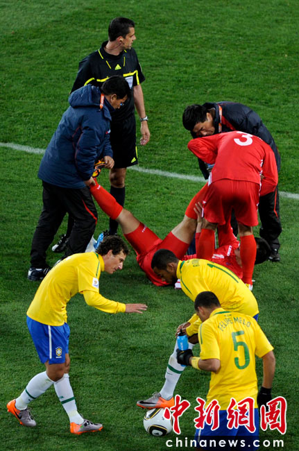 北京時間6月16日凌晨2:30進(jìn)行的一場世界杯小組賽G組的較量中,巴西隊迎來了朝鮮隊。最終經(jīng)過90分鐘激戰(zhàn),巴西隊2-1擊敗朝鮮,贏得南非世界杯開門紅。中新社記者 廖攀 攝