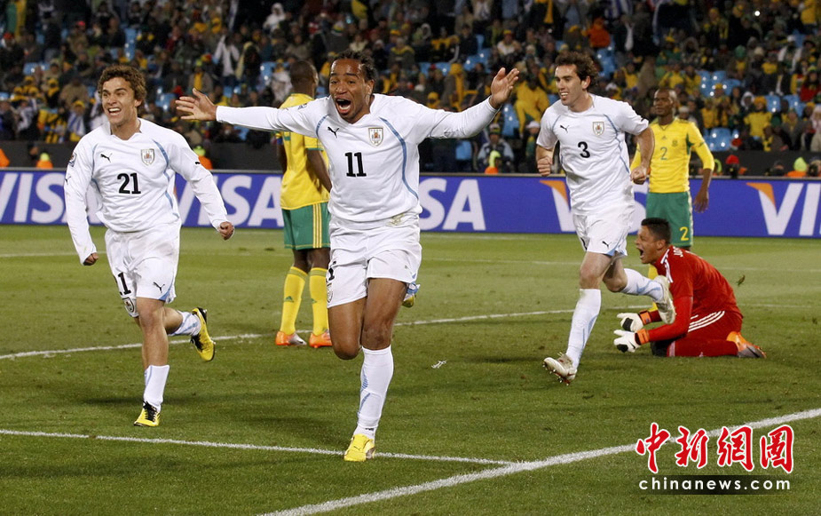 6月17日,世界杯A組第二輪南非迎戰烏拉圭。最終憑借弗蘭的梅開二度和佩雷拉終場補時的進球,烏拉圭隊以3-0擊敗南非,出線形勢一片大好。