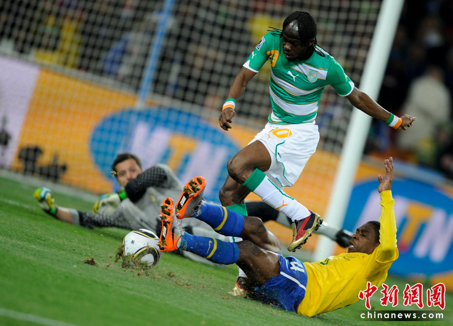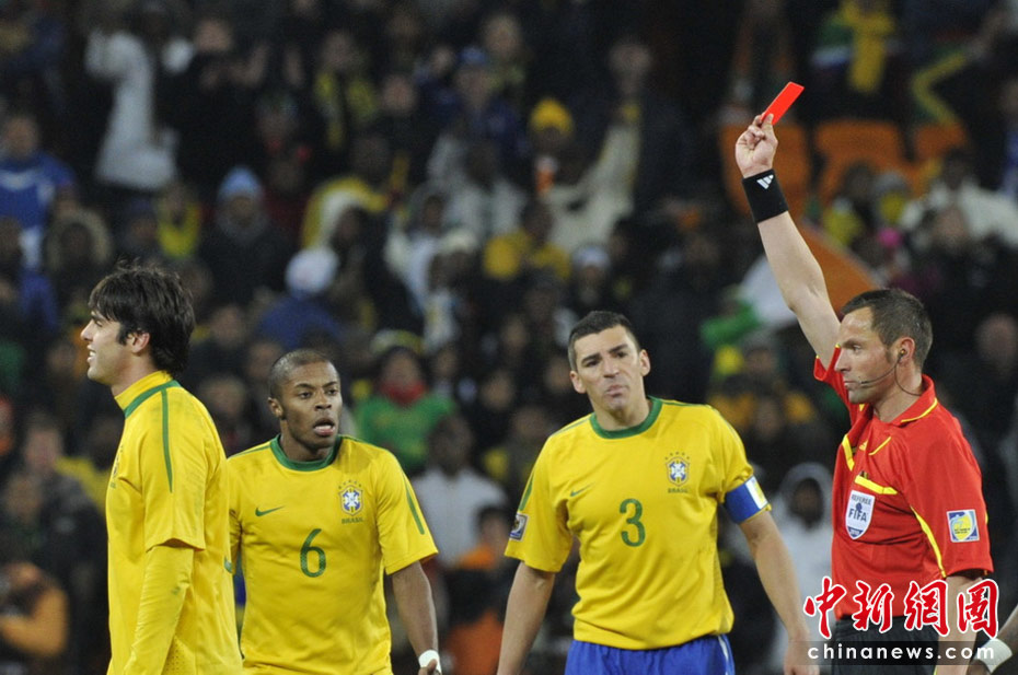 北京時間6月21日凌晨進行的一場世界杯小組賽中,巴西隊在約翰內斯堡足球城球場迎來了第二個對手科特迪瓦。最終憑借法比亞諾梅開二度和埃拉諾的進球,巴西3-1擊敗科特迪瓦。而在比賽進行到第88分鐘時,卡卡因肘擊對方球員,累計兩張黃牌被罰下場。