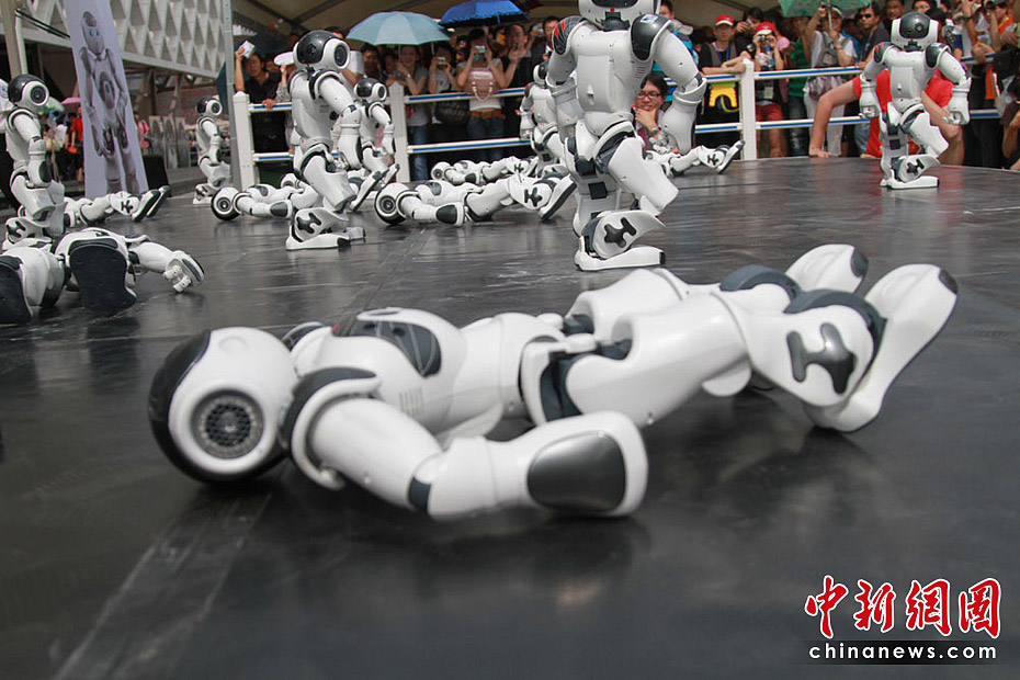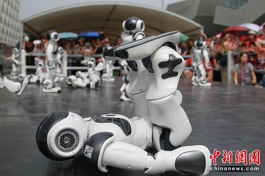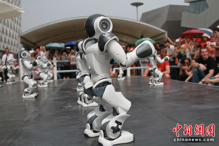 6月21日,上海世博會(huì)法國館展示的機(jī)器人首次在展館外入口處表演“舞蹈”。當(dāng)天是世博法國國家館日,館方還舉行系列了慶典活動(dòng)。中新社記者 殷春永 攝