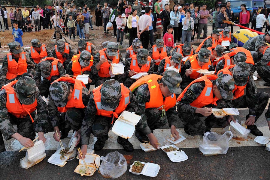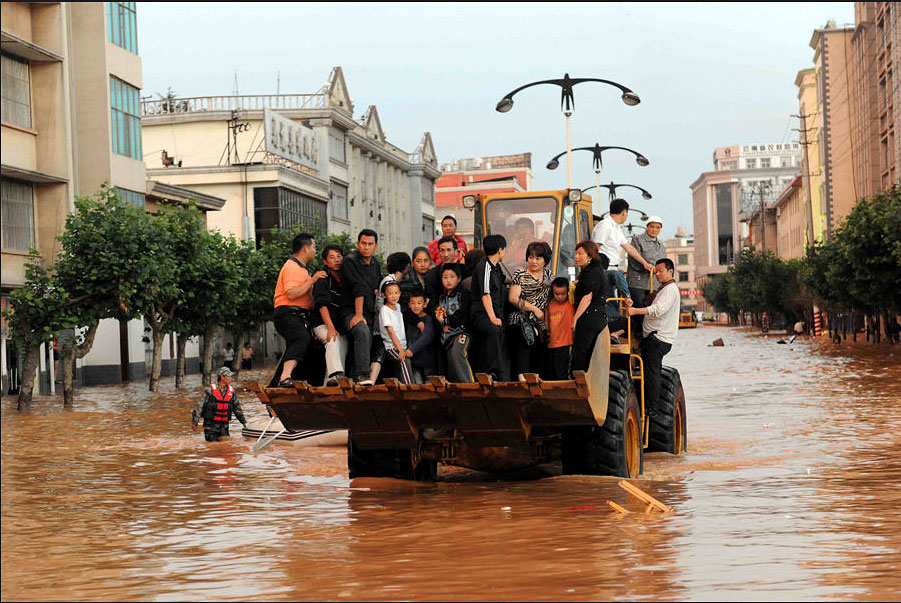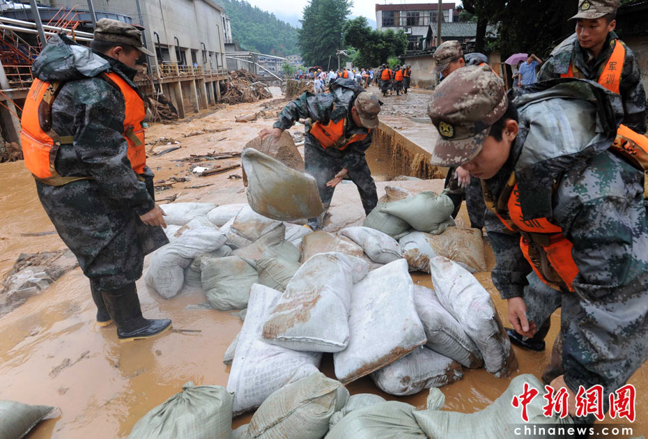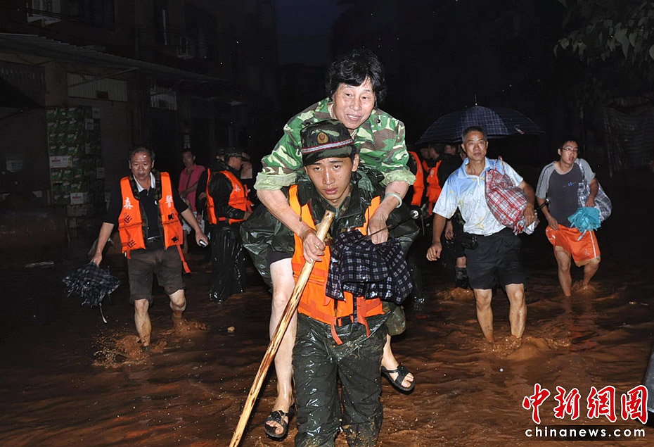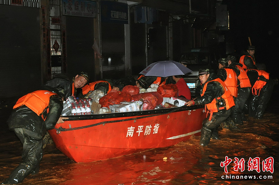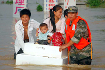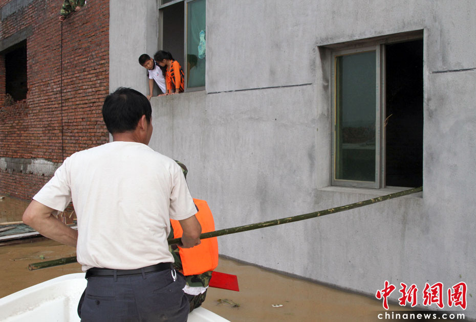 江西第二大河流撫河干流發生超歷史洪水,撫河唱凱堤21日傍晚決口,嚴重威脅下游5個鄉鎮14.5萬人口的安全。南京軍區戰士和群眾一起解救被洪水圍困的婦女和小孩,泡沫箱成了“生命小舟”。何柳斌 攝