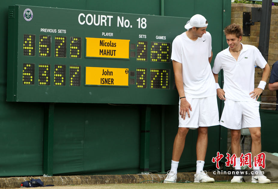6月24日,2010年的溫布爾登網球大滿貫創造了一項吸引人眼球的紀錄。在男單首輪比賽中,法國的馬胡和美國大炮伊斯內爾在決勝盤長盤中制造了一系列恐怖紀錄。整場比賽耗時665分鐘,這是網球歷史上第一次一場比賽分3天來完成。