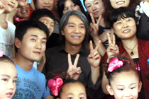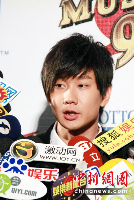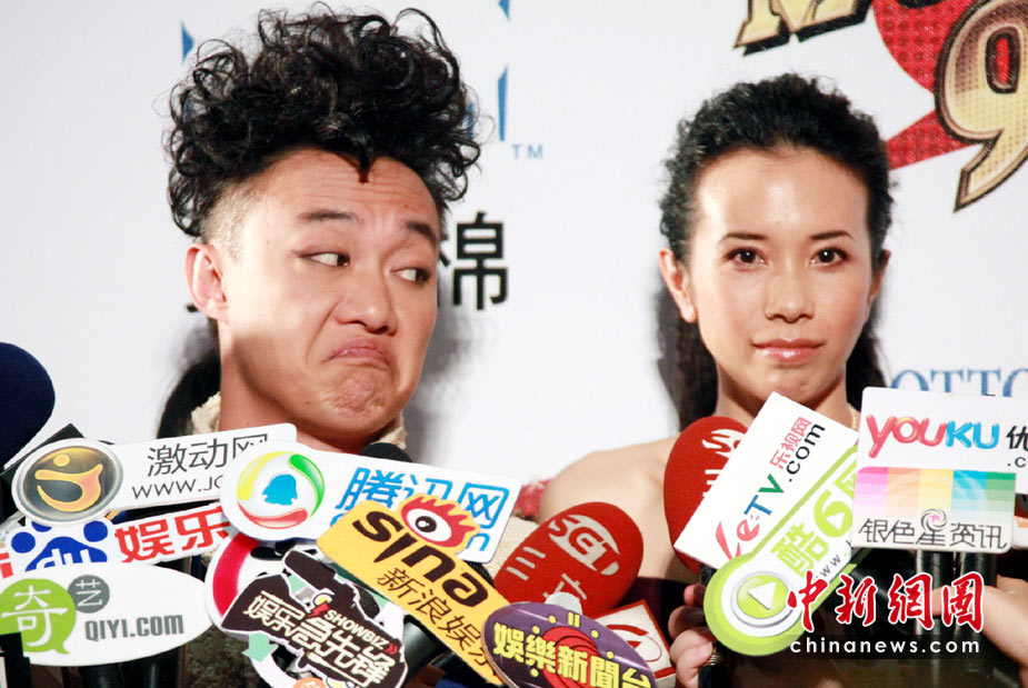 6月26日,臺灣第21屆金曲獎流行音樂類頒獎典禮星光大道在臺北小巨蛋舉行。圖為陳奕迅、莫文蔚聯袂出席,陳奕迅可愛扮鬼臉。中新社記者 黃少華攝