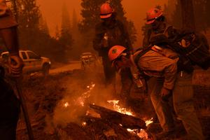 美國消防員用嘴噴水滅火