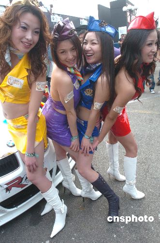 十一月十八日,幾位美女在第五十四屆澳門格蘭披治大賽車上亮相。性感的服飾。苗條的身材,動人的眼神,爭艷斗麗,各領風騷。中新社發 史利 攝