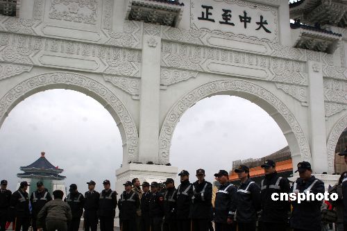 十二月五日,臺北“中正紀念堂”牌樓“大中至正”四字將拆除引發(fā)的風波升級,現場爆發(fā)數波零星沖突。圖為臺灣當局調來上百名警察嚴陣以待。中新社發(fā) 董會峰 攝