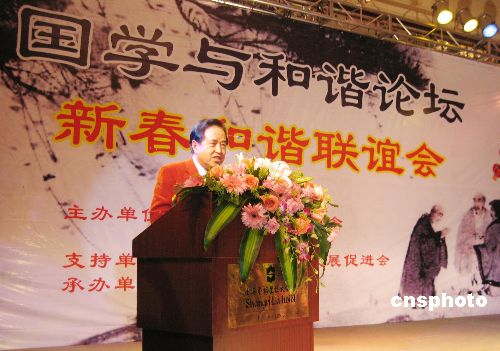 一月十一日,世界華人聯(lián)合總會會長賀興桐,在廣西北海市召開的全球華商“國學與和諧論壇暨新春和諧聯(lián)誼會”上致辭。當日,來自海內外五百余名華人華商匯聚該論壇,縱論“國學與和諧”,共商廣西北部灣經(jīng)濟區(qū)及中國西部地區(qū)的創(chuàng)業(yè)大計。中新社發(fā) 馮抒敏 攝