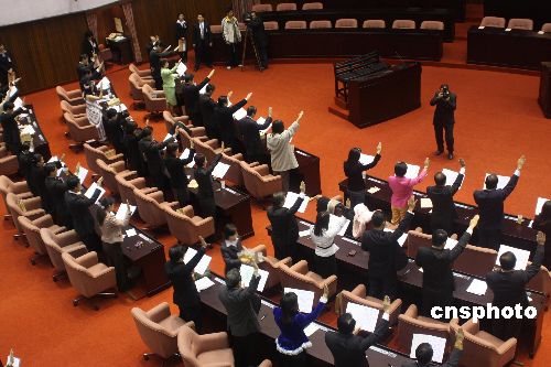 2月1日,臺灣第七屆“立法委員”辦理報到并宣誓就職。圖為議場內舉行宣誓就職儀式。中新社發 耿軍 攝