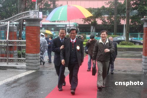 二月一日,臺灣第七屆“立法委員”辦理報到并宣誓就職。資深工作人員親自為每位“立委”撐傘,口中不斷說:“恭喜!恭喜!”中新社發 耿軍 攝
