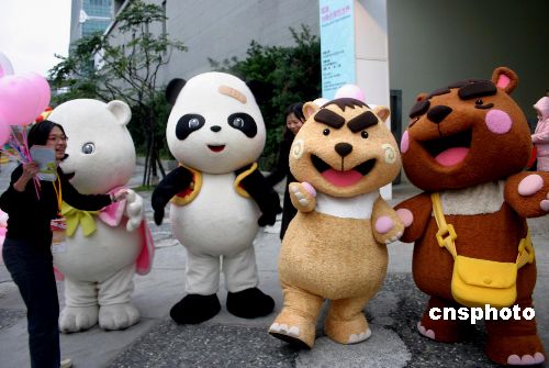為推銷書(shū)展,有業(yè)者在展館門(mén)口以道具扮演“熊貓”吸引觀眾。