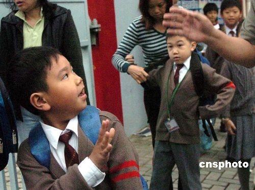 三月三十一日,早前曾有學(xué)童病逝的屯門順德聯(lián)誼總會何日東小學(xué)的學(xué)童回校上課。此前,香港全部小學(xué)、幼兒幼兒園和特殊學(xué)校停課兩周,以應(yīng)對流感。中新社發(fā) 譚達(dá)明 攝