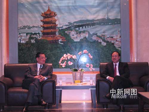 5月6日上午9時(shí)05分,中國(guó)國(guó)民黨榮譽(yù)主席連戰(zhàn)一行乘機(jī)離開武漢,結(jié)束了他此次的大陸之行。連戰(zhàn)一行是于4月28日抵達(dá)北京的,并先后在北京、重慶、湖北等地參訪。 圖為中共中央臺(tái)辦常務(wù)副主任鄭立中(右)在武漢天河機(jī)場(chǎng)候機(jī)室與連戰(zhàn)一行道別。作者:艾啟平