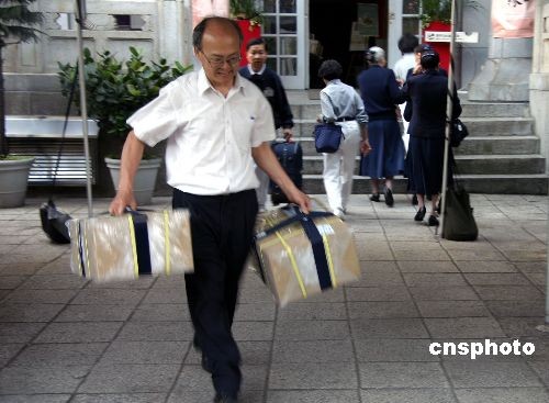 十五日上午七時,具有九二一地震救災經驗的慈濟志工共十一人自臺北出發,他們將搭機前往四川綿竹等地區展開前期勘災與救援物資發放工作。中新社發 劉舒凌 攝