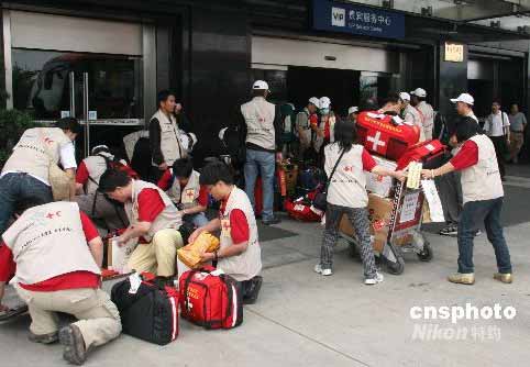 結(jié)束在四川地震災(zāi)區(qū)五天的醫(yī)療救援工作后,臺(tái)灣紅十字醫(yī)療隊(duì)一行三十七人,五月二十五下午乘飛機(jī)離開四川,返回臺(tái)灣。中新社發(fā) 齊彬 攝