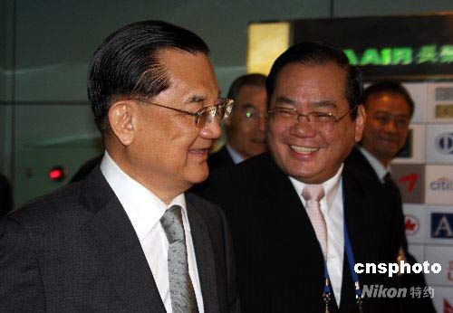 5月26日上午,中國國民黨主席吳伯雄率團訪問大陸。圖為中國國民黨榮譽主席連戰(左一)前往機場送行。中新社發 陳立宇 攝