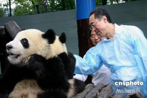 8月1日下午,香港政務(wù)司司長(zhǎng)唐英年率考察團(tuán),前往中國(guó)第三大大熊貓圈養(yǎng)中心——中國(guó)保護(hù)大熊貓研究中心雅安碧峰峽基地實(shí)地考察。他重點(diǎn)考察了熊貓幼兒園、繁殖區(qū)等,詢問地震后基地熊貓的生活、健康、繁殖情況。中新社發(fā) 蔣艷英 攝