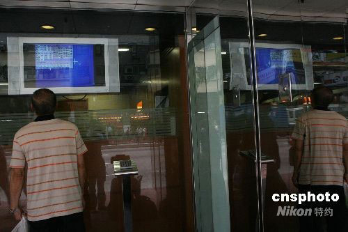 九月十六日,受美國雷曼兄弟破產、美股大跌影響,香港恒生指數重挫,開市跌逾千點。圖為香港股民關注股市及時行情。中新社發 武仲林 攝