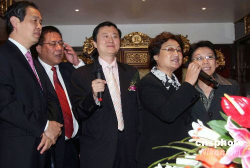 法國(guó)僑界十六日晚在巴黎舉行盛大歡迎會(huì),歡迎中國(guó)國(guó)務(wù)院僑辦主任李海峰率團(tuán)訪法。在僑胞要求下,李海峰(右二)演唱歌曲《常回家看看》,歡迎僑胞常回祖國(guó)、常回家鄉(xiāng)走走看看。中新社發(fā) 吳衛(wèi)中 攝